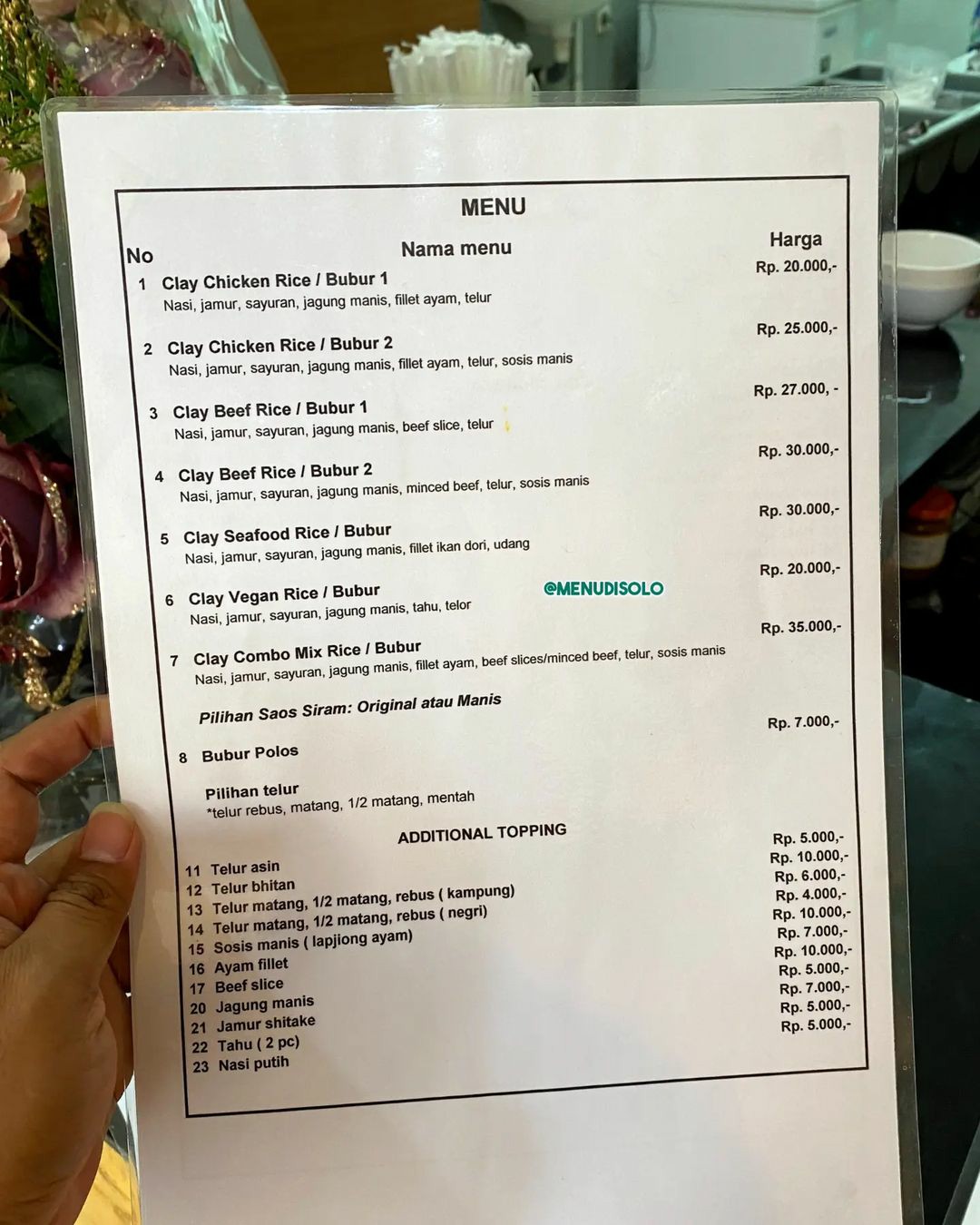 Buku Harga Menu Claypot 88 Solo Baru ( Source : from @menudisolo )