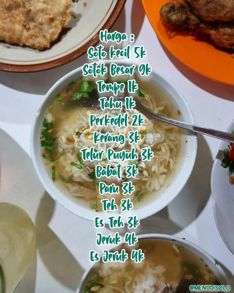 Buku Harga Menu Soto Sompil Pajang Solo ( Source : from @menudisolo )