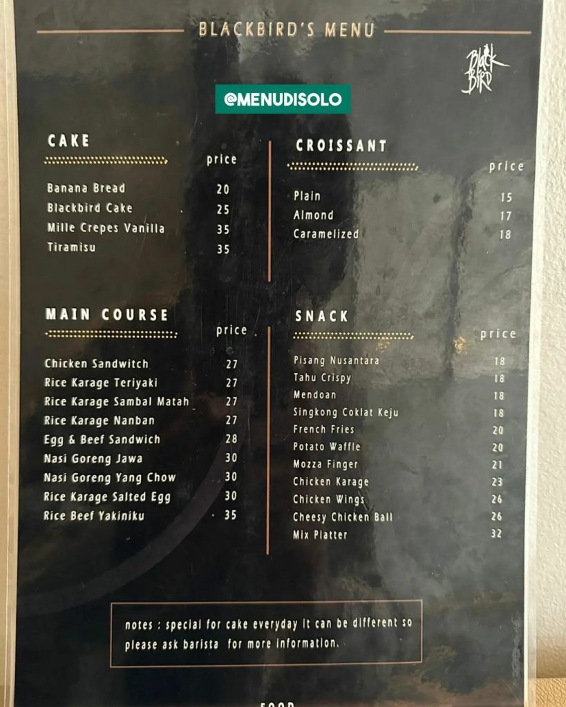 Sudah cek info Buku Harga Menu Blackbird Coffee Solo Singosaren. Cari info menu di Solo terbaru? Cek update Buku Menu Solo. Cek sekarang juga….