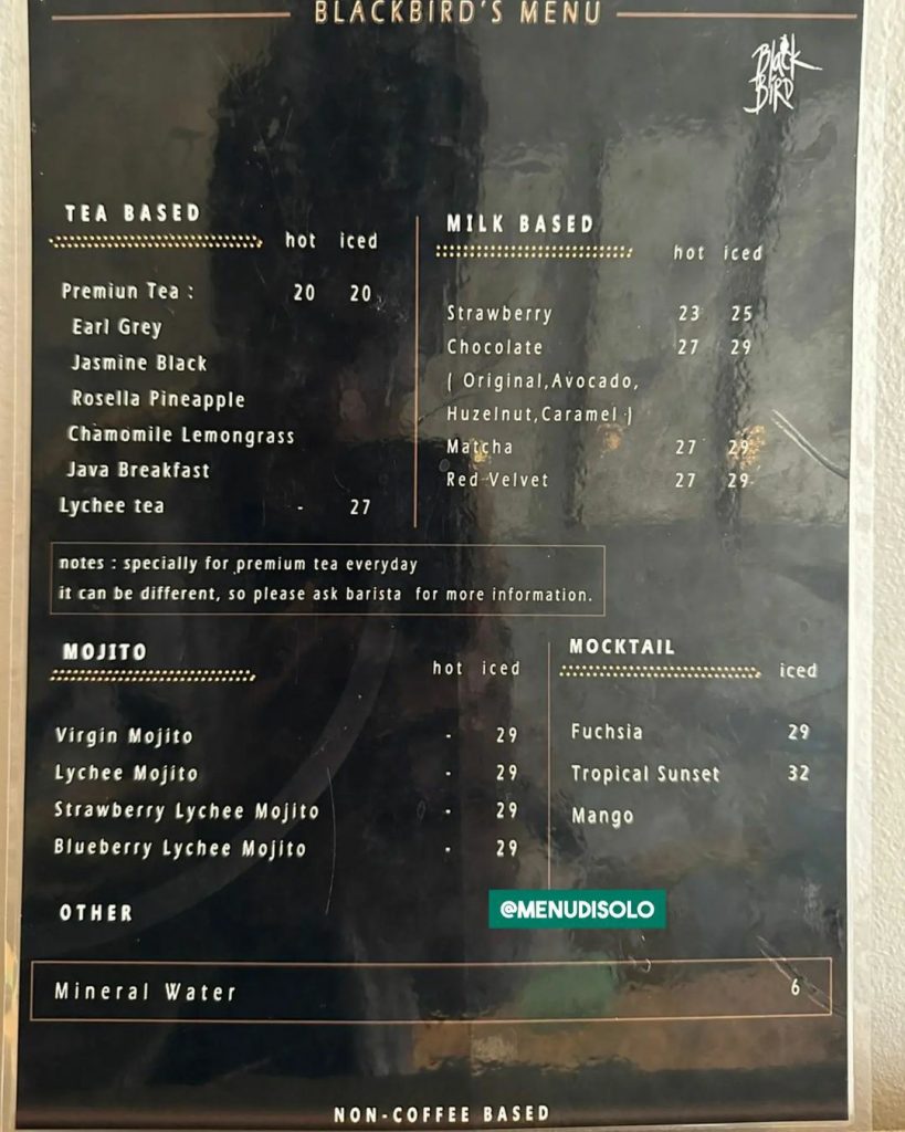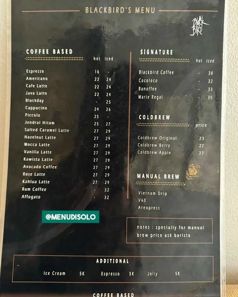 Buku Harga Menu Blackbird Coffee Solo Singosaren