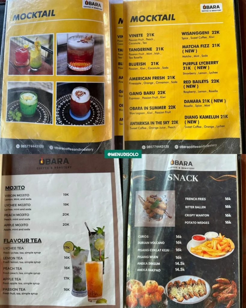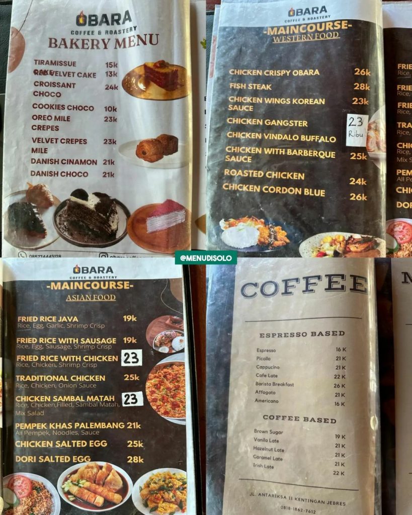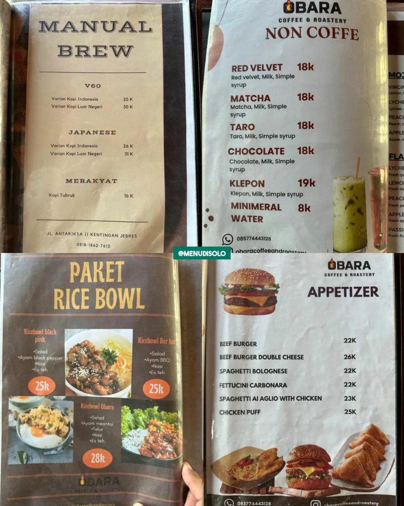 Buku Harga Menu Obara Coffee Roastery di Solo