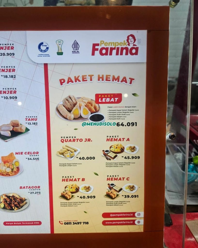 Buku Harga Menu Pempek Farina Solo Square