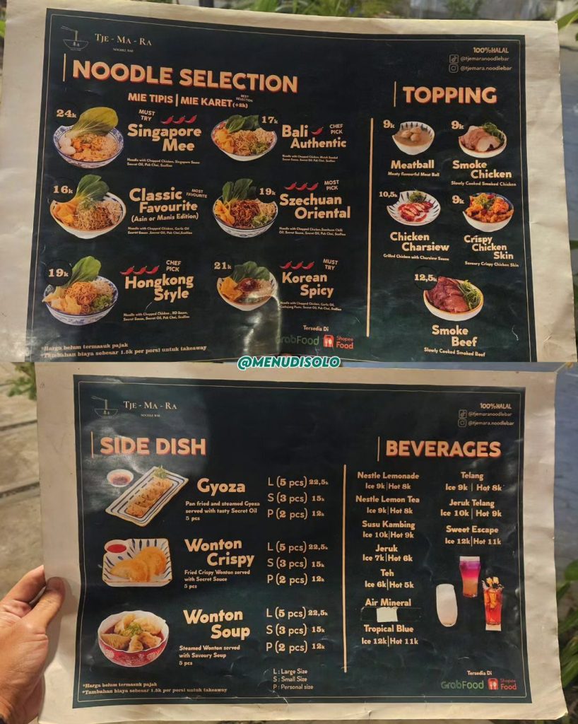 Buku Harga Menu Tjemara Noodlebar di Solo ( Source : from @menudisolo )