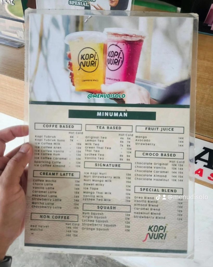 Sudah cek info Buku Harga Menu Kopi Nuri Gentan? Referensi kuliner enak di Solo. Cari info menu di Solo terbaru? Cek update Buku Menu Solo. Cek sekarang juga….