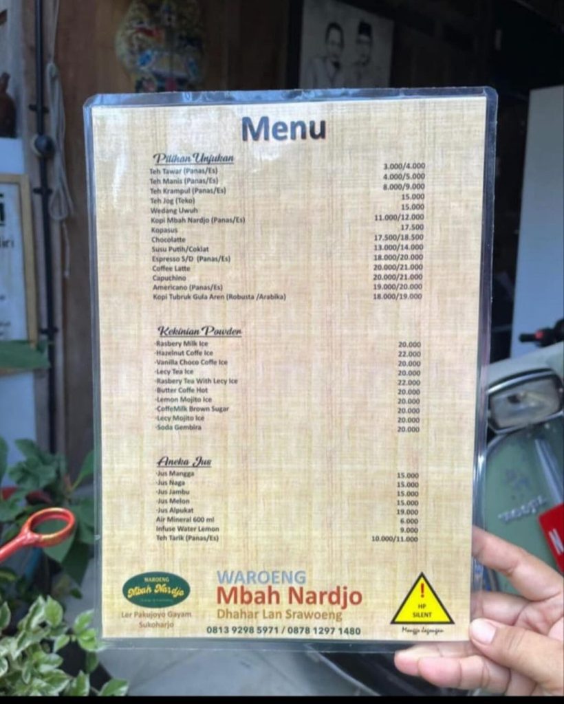 Buku Harga Menu Waroeng Mbah Nardjo Gayam Sukoharjo